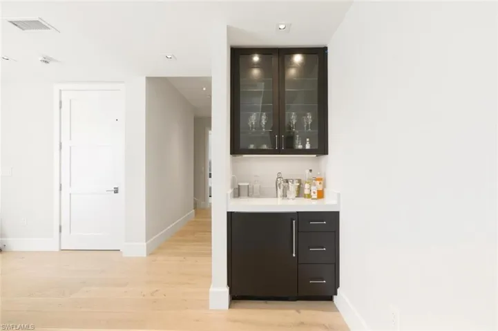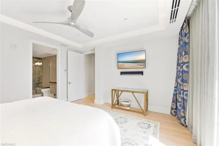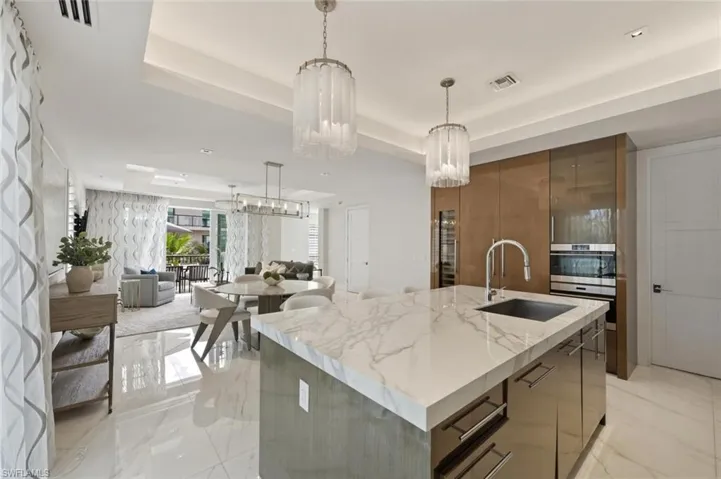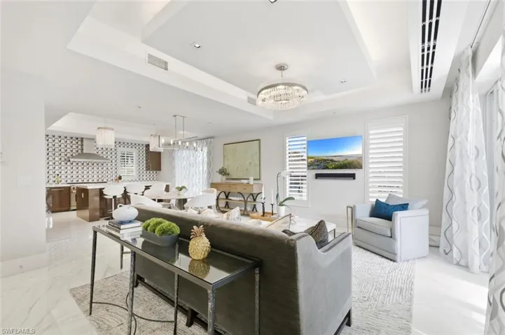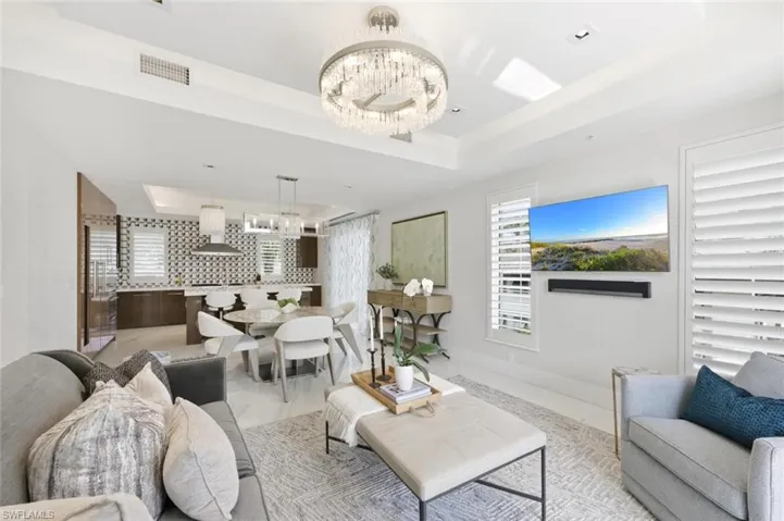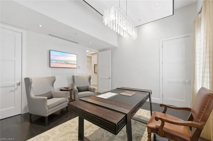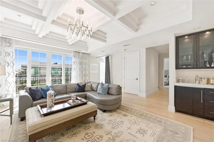 Available Seasonally ($48,000/month) and Annually ($28,000/month). For the first time ever, a rental is available at the ultra-prestigious Residences at 5th and 5th—your perfect winter retreat in the heart of Old Naples. Situated directly on iconic 5th Avenue South, this exquisite 3-bedroom plus den (den can be easily converted to a 4th bedroom), 4.5-bath villa embodies the pinnacle of luxury living. Spanning nearly 7,500 square feet across four light filled levels, the home is appointed with elegant furnishings, a neutral color palette, and refined finishes throughout. The inviting living room features a chic sectional, rich wood flooring, and French doors that open to a private balcony. Culinary enthusiasts will delight in the chef’s kitchen, showcasing premium appliances, a gas range, custom cabinetry, and an expansive island with breakfast seating. The adjacent dining area, complete with a stylish table for six and a wine cooler, sets the stage for effortless entertaining. Ride your private elevator to the primary suite, a true sanctuary with its own balcony, brand-new king bed, and custom walk-in closet (photos coming soon). The spa-inspired primary bath boasts a soaking tub, walk-in shower, and TV. Two additional guest suites, each with a king bed, ensure visitors are equally indulged. A relaxed family room with balcony access offers yet another space to unwind while enjoying views of the city lights. On the garage level, a bonus entertainment room with a built-in bar provides the perfect setting for gatherings. Perched high above exciting 5th Avenue, your private rooftop oasis awaits—complete with hot tub and sweeping views of Naples’ legendary sunsets. Also on the rooftop level is the shared pool, grill area and bar. A fitness center is available to all residents on the lobby level. Practical luxuries include an oversized two-car garage with abundant storage. Just outside your door to discover world-class dining, boutique shopping, and the sugar-white sands of Naples’ beaches. Live exceptionally in Old Naples!