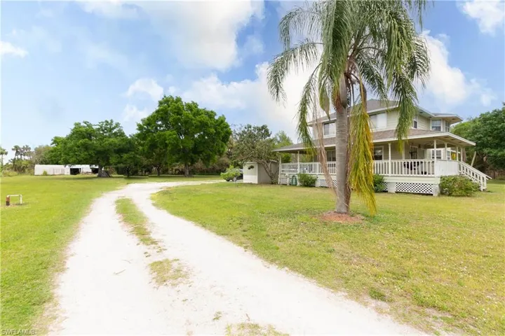 Nestled within the tranquil landscapes of Alva, this captivating 2,260 square foot Colonial-style residence offers a harmonious blend of comfort and natural beauty with an excellent opportunity to infuse your personal touch. Step inside to discover spacious living areas brimming with potential as this two-story home boasts 4 bedrooms and 3 baths, waiting for your creative renovation and modernization. Sitting on an expansive 3.64-acre lot zoned AG-2, providing ample space for both relaxation and entertainment, the property welcomes horses, making it an ideal equestrian retreat. Bedman Creek meanders through the backyard, creating a serene ambiance. A new dimensional shingle roof installed in 2017 ensures durability and longevity. The driveway stretches generously, offering ample parking space, while detached storage buildings provide practical storage solutions. Inside, the ground floor hosts formal living and dining rooms, complemented by a mudroom, and a convenient fourth bedroom. The well-appointed kitchen boasts all appliances while an indoor laundry room and large pantry enhance functionality. Upstairs, the master bedroom awaits with a charming claw food tub, separate shower and walk-in closet, accompanied by two guest bedrooms offering stunning views of the property. This quiet and peaceful setting is conveniently located just minutes away from SR 80 and I-75, as well as the scenic Caloosahatchee River, offering both convenience and tranquility for a truly idyllic lifestyle. Don’t miss the opportunity to experience the best of country living in Alva.