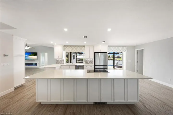 Welcome to your dream Gulf-Access pool home in SE Cape Coral! This beautifully remodeled home offers the perfect fusion of modern elegance and coastal charm. Featuring a newly renovated kitchen with high-end appliances, abundant soft-close cabinetry, an oversized 13′ x 4′ kitchen island with Quartz countertops and bar seating, and a large pass-through window that opens to the lanai and pool. The spacious living room showcases a Napoleon Fireplace and a 75-inch Samsung TV for ultimate relaxation and entertainment, plus built-in cabinets for additional storage. Each bathroom is designed with new vanities, quartz countertops, decorative shower tiles, and glass enclosures. The outdoor living area is an entertainer’s paradise, complete with a fully-equipped outdoor kitchen featuring a Twin Eagle grill and cooktop, a pavered lanai, new pool enclosure, and lanai screens. Boaters will love the new composite dock with a 13k lb Neptune boat lift and canopy, along with a Tiki Hut to watch breathtaking sunsets over the intersecting canal. Additional home features include woodgrain tile flooring throughout, a water filtration system, reverse osmosis for drinking water, impact windows and doors, Kevlar hurricane shutters, new lighting, ceiling fans, Plantation shutters, LCEC surge protection, and Solar Panels with an Enphase system PAID OFF (reducing your electric bill by 40%). For a full list of upgrades, please refer to the attached Features List. Don’t miss your opportunity to experience the Florida lifestyle—schedule your private tour today!