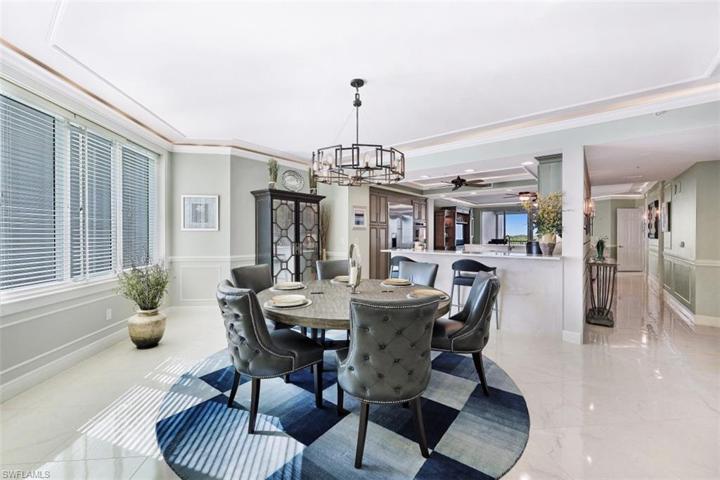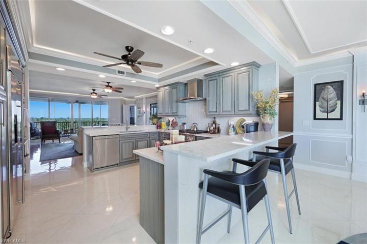 Take in the serene vistas of Turkey Bay, the preserve, and the Gulf. This residence is in a gated tower with luxurious amenities and is just a short stroll to one of Southwest Florida’s most stunning beaches. With ceiling heights over 9 feet, a gourmet kitchen with a gas cooktop, decorative stainless hood, built-in convection oven, stainless steel side-by-side refrigerator, and under-counter wine cooler, as well as a large primary suite and a guest primary with an ensuite, you can enter this spacious home from the elevator that opens into your foyer. According to the developer brochure, all external windows comply with FLA 2002 impact requirements. The Club at The Dunes features indoor and outdoor dining, a tennis pro shop with six lit tennis courts, a state-of-the-art fitness center, a billiards and game room, a Tiki bar with food and beverage service around the resort-style pool, a spa, and guest rooms. It was designed with an elegant coastal contemporary aesthetic. This condo comes with the ability to have the Floridan Beach Club membership. There is a shuttle service that provides service to the club and back to your residence. The Dunes is one of Naples Premier Coastal Communities managed by Troon. The two parking spaces are located on the Plaza Level.