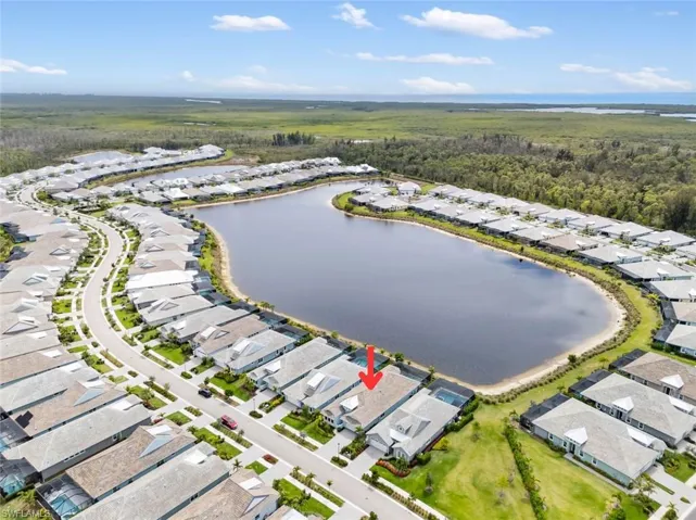 A Must See! Sunsets galore, peaceful lake view, a stunning, spacious, west facing, furnished modern single family home, built in 2023, featuring 4 bedrooms + den and three bathrooms plus an additional powder room in the sought after Isles of Collier Preserve. The Acacia Grande Model offers extensive open-plan living, includes a welcoming entrance hall with thoughtfully designed bedrooms and den to allow for privacy and space. The heart of the home is a stylish open-plan kitchen and breakfast room with a central island and a full range of integrated appliances and view to the lake and beautiful sunsets. Many upgrades and additional highlights include a fabulous outdoor kitchen, pool & spa, Storm Smart, whole house water filtration and Kinetico system, wall and ceiling moldings, Primary Bedroom built in closets, designer wallpaper, window treatments, elevated cabinets throughout, stainless steel quality appliances, lighting fixtures and mirrors with French door on the den, impact glass and more. Located in the Isles of Collier Preserve surrounded by the beautification project of the Bayshore District, with convenient access to the US Pickleball Complex, Bayview Park, The Botanical Gardens, numerous restaurants and amenities., Also featuring the many activities of your choice from Pickleball, Tennis, Bocce, Resort Pool and Lap Pool, Fitness Room, miles of walking and biking, as well as an onsite restaurant. In addition, luxury development throughout East Naples will continue to add value to an already wonderful neighborhood! This exceptional home is one to see in person, and absolutely fantastic!