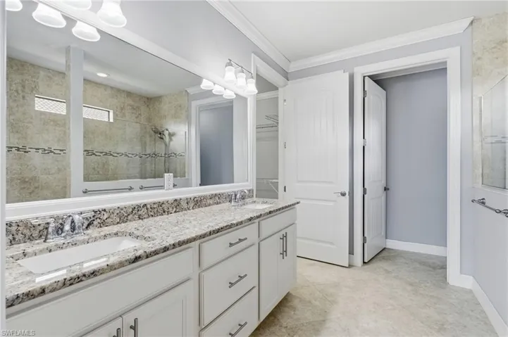 The primary suite is generously sized to accommodate all your furnishings and includes an ensuite bathroom with a step-in shower with bench, double vanity, and a huge walk-in closet. A guest suite also features its own ensuite bathroom and walk-in closet, while the third bedroom offers another walk-in closet for ample storage. The 3-car garage is a crafter’s dream, equipped with a split unit AC, insulated garage door, sink, epoxy flooring, and a basket storage system to keep everything organized. Safety and security are top-notch with an alarm system that can be monitored, storm screens, and accordion shutters. With its thoughtful upgrades, elegant finishes, and inviting indoor-outdoor living spaces, this home truly has it all.