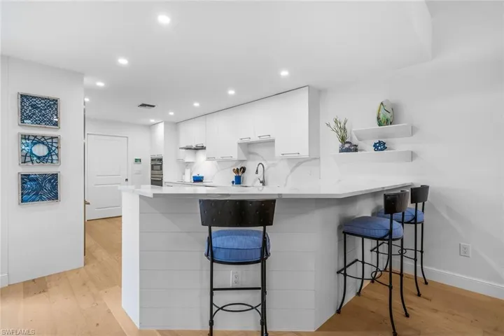 Golf course views. This charming three-bedroom, 2.5-bath villa has spectacular views of the 9th fairway of the Pelican Bay Golf Club, where you’ll enjoy beautiful sunsets from the spacious lanai and outdoor terrace. This meticulously maintained, open and airy custom villa has volume ceilings with a completely updated kitchen, ideal for entertaining. The community pool is conveniently across the door. Pets are welcome! You may have two. You’ll love the convenience and gracious lifestyle that comes with your membership and exclusive amenities include coastal private dining, full bar service, staffed attendants to assist members and guests along with social, fitness and racquet activities. Pelican Bay’s private white sand beaches stretch nearly three miles long. Nearby luxury shopping at Waterside Shops, delicious cuisine, Artis Naples, home of the Baker Museum, and Naples Philharmonic is your premier destination for the arts. It’s all about location so see it today!