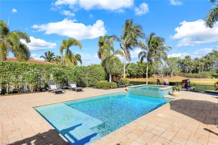 Experience the pinnacle of luxury and craftsmanship at 18137 Via Portofino Way, a stunning home in the desirable 20-home Portofino enclave in award-winning Miromar Lakes. This exceptional residence built by London Bay Homes features three spacious bedrooms, each with its en-suite bath, ensuring privacy and comfort for family and guests. A versatile den offers the ideal space for a home office, library or media room, while an additional work area provides functionality for hobbies or remote work. Thoughtfully designed with custom finishes throughout, this home showcases exquisite craftsmanship, from coffered ceilings and crown molding to high-end flooring and designer lighting. Built with modern convenience and safety in mind, it boasts impact-resistant windows and doors, offering peace of mind during storms. The chef’s kitchen is a showstopper, featuring top-of-the-line appliances, natural gas cooktop, custom cabinetry, walk-in pantry and a spacious island, ideal for entertaining. Step outside to a serene outdoor living area with a covered lanai featuring outdoor kitchen and fireplace, disappearing electric screens, saltwater pool and spa, all taking advantage of lovely morning sunrises and water views. An air-conditioned, extra-deep three-car garage adds convenience, while dock rights are in place, making it easy to create your private waterfront and boating oasis. In Miromar Lakes’ world-class community, enjoy unparalleled amenities, including boating on the 700-acre Lake Como, three miles of private white sand beach with cabanas, 10,000-square-foot zero-edge infinity pool, championship golf, endless opportunities for boating, water skiing, kayaking, paddle boarding, fishing, two marinas, racquetball, pickleball, bocce, the European wellness spa and full-service salon, state-of-the-art fitness center, botanical park, concierge services, signature championship golf, three restaurants, plus a dynamic year-round social calendar, all nearby. This exceptional home combines elegance, functionality and opportunity to live the ultimate Florida lifestyle.