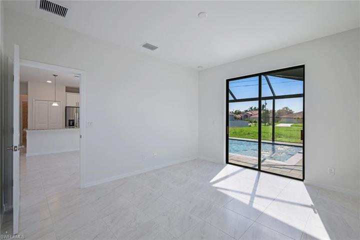 New Construction Sunsational Homes Jazzy floor plan South of Cape Coral Parkway. Featuring 4 Bedrooms with 2 Bathrooms and Luxurious Pool. You will immediately notice the Paver driveway and Grand Entry with Stylish Stoned columns and Contemporary Lighting. As you walk through the Glass door entry you are immersed in bright natural light. This home features upgraded tile flooring throughout, Granite counter-tops, Stainless-Steel appliances, White Shaker 42” solid wood cabinets, epoxy painted garage, upgraded landscape package with underground electric, WIFI smart garage. Master suite features oversized his and hers walk-in closet and upgraded walk-in shower. Perfect location for a vacation rental surrounded by million-dollar high end waterfront homes. Take your golf cart or a quick walk to Publix, Cape Harbour Marina or Camelot Park. The paver-screened lanai, with pool and Western exposure ensures you’ll savor breathtaking sunsets day after day and a perfect area to entertain family and friends. Utilities in and paid for! Don’t miss your opportunity for New Construction in the best area of Cape Coral! Builder offering 3% closing cost credit with builder preferred Lender