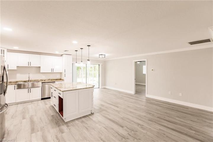 This beautifully remodeled 3-bedroom 2-bath single family home offers the most up to date upgrades plus new roof, central AC & impact windows. Freshly painted interior & exterior, LED recess lighting, high quality vinyl flooring throughout, and not to mention the gorgeously new tiled bathrooms. The open kitchen concept bares crisp white cabinets with a massive island & stainless-steel appliance package to match. Picture yourself enjoying a cold brew in the screened patio which gazes over the newly built pergola. The backyard opens to a private woodland with a lovely pond for added privacy. The two-car garage provides washer & dryer hook-ups & plenty of storage space. This home is nestled in a conveniently quiet neighborhood in close proximity to all shopping, dining and schools. Give me a call today to schedule a tour as this home will not last!