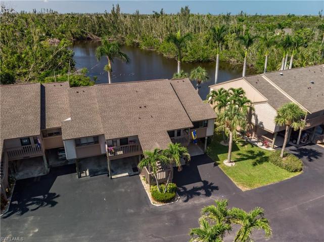 Beautifully-maintained Captains Harbor end unit condo with numerous upgrades including impact windows throughout (including downstairs), electric hurricane shutter on lanai, new no-see-um screening on lanai. A/C new in 2016. Remodeled kitchen (new dishwasher in 2023) and baths with tile floors, granite countertops and custom canned lighting. Livingroom flooring is gorgeous Brazilian Mahogany. Ceramic tile in kitchen and baths. Pond view from screened lanai perfect for observing nature at its best. Outdoor features include flake system on driveway requiring only hosing off with water to clean. Tiled garage floor. Assigned boat slip available through the community’s dock master. All move-in ready for your new seasonal or forever home! Enjoy the island lifestyle here!