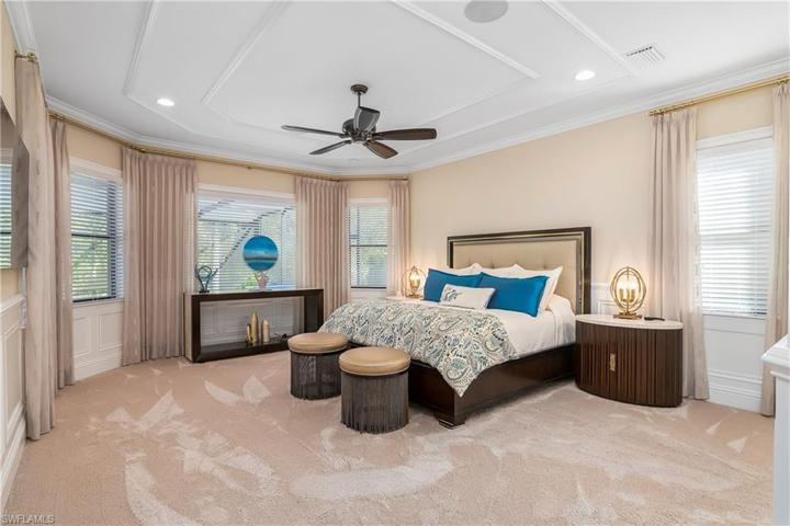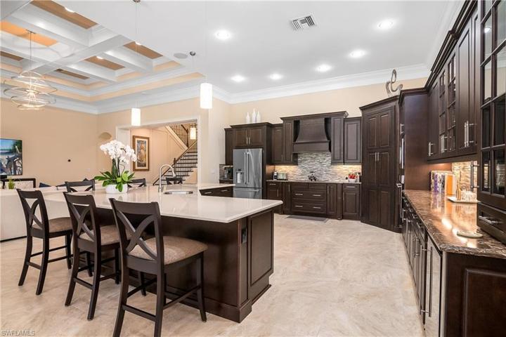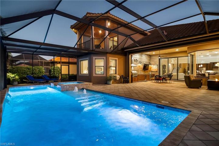 This Turnberry Grand model is a must see! This 3 bedroom, plus den 5 bath pool home has been custom tailored from the ground up. With the original owners attention to detail along with the builder Minto’s quality and craftsmanship one goal was paramount, to build the perfect dream home. The list of custom features are endless, no expense was spared for the owners new dream home. To start with, entering the Lanai through the zero corner sliding doors you won’t find a large support pillar to obstruct your view, a structurally engineered reinforced tie beam was designed, to showcase the custom pool and picture frame screened enclosure. For your outside entertaining you can enjoy a heated saltwater pool and jacuzzi, fully elevated outdoor kitchen, custom woodwork designed and installed by the very best craftsman, a one off custom built illuminated stone waterfall all inside the open panel picture frame enclosure. The entire home was built with impact resistant doors and windows, even the garage door is hurricane proof, the 2 car garage is fully finished and air conditioned as well. But to fully appreciate the true quality all you need to do is step through the front door, once you step one foot in the Foyer you will be amazed at just how majestic this house really is. Custom wood work and true craftsmanship shows everywhere, 8ft solid core doors throughout, high baseboards, coffered ceilings, crown molding and custom hand crafted details in every room. The kitchen features large bay widows, a 15ft island, level 4 cabinets and granite counters. Stainless appliances, walk in pantry, abundant cabinet storage with glass showcase soft close doors, soft close draws along with an illuminated stone backsplash, designer pendent lighting and seating for 6 at the island. This floor plan is perfect for entertaining with high ceilings, open concept designed with large bay windows and zero corner sliding doors you feel like your part of the pool party in the kitchen. This home features 2 master suites, the main which is down stairs is huge and surrounded by windows for an even more open experience, the master bath has a separate shower and jacuzzi tub, his and her vanities and a fully custom closet system. On your way to the second story you will notice the painstaking multi layers of finishing that went into the staircase, custom mirror art and wood work. Once up stairs you will notice one room has a fully screened