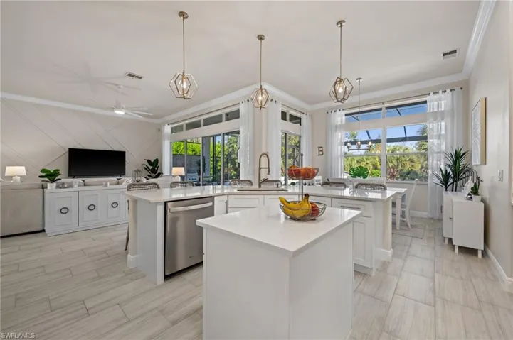Step outside to your fully reimagined lanai, complete with new pavers, new pool tile, panoramic screen enclosure, saltwater pool and spa, and a built-in summer kitchen — ideal for entertaining year-round. A lighter paver driveway, custom landscape lighting, extensive edging, and a completely redesigned landscape package enhance the home’s curb appeal. The three-car garage includes extra space for a workshop or potential golf cart storage.
