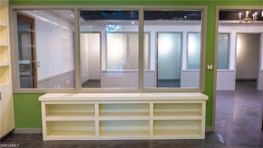 3 entrances (elevator & stairs), Entrance Foyer & Waiting Room, 9 glass enclosed offices, state of the art Kitchen / Break room with brushed Stainless Kitchen Aid Appliances, custom cabinetry & subway tile in kitchen, natural light, polished cement floors, modern lighting & amenities,, private restroom, wind rated windows