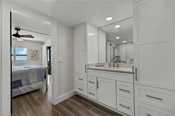 Enjoy direct views of the Gulf from this second floor two bedroom condo. Comprehensively renovated during the last two years, it is beautifully finished with quartz counters, soft- close white shaker style cabinets, wood plank tile throughout, recessed lighting, new stainless steel kitchen appliances, a full size washer and dryer, and coastal furnishings. New AC and new tankless water heater. The building is just steps from the surf… the gentle sound of the waves rolling onto the shell- strewn sandy beach creates an amazing peaceful setting. The beach-front path to the pool is just down the stairs. Beyond the beach and pool, Ocean’s Reach offers tennis, pickleball, shuffleboard, corn hole, and a grilling and outdoor dining area in a lakefront setting. The on-site office accommodates owners and does an exemplary job with reservations and guest experience. Pet-friendly for owners and in a location separate from most other island condos, this is a welcoming and relaxing environment. With a strong on-site rental program and low rental fees, this is one of the island’s best income- producers. Perfect for a second home, year-round retreat, or income property, this is an exceptional opportunity.