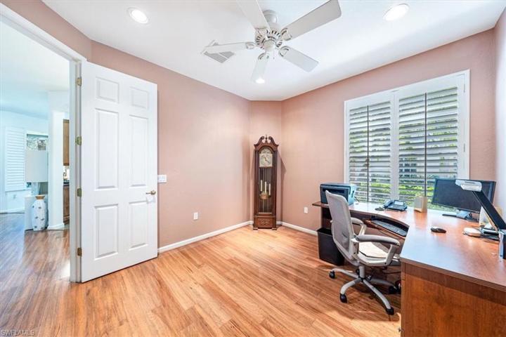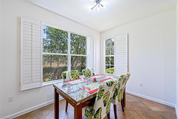 This first floor corner unit is overlooking a beautiful nature preserve. When you enter the front door you land in a spacious foyer and your eyes are immediately drawn to the screened lanai that stretches across the unit with views of the nature preserve. The kitchen, dining and living room are bright and open making it a pleasure to entertain. Other features include, plantation shutters, hardwood floors and tile in the main living area, 3 bedrooms, 2 baths with split bedroom floorpan. The owners suite is spacious with access to the lanai, walk-in closets, private bath featuring separate vanities with Quartz counter tops, a spa tub and separate frameless shower. 2 car attached garage with amazing storage, wired for generator, roof new in 2020. Community pool & cabana and active social group make it a true joy to call this home. Madison Park is built around 6 lakes and preserve areas, close to I-75 and moments away from 5th Ave and beautiful beaches. $75 social membership available at Walkers Marina for Quincy Square residents where you can enjoy live music 3 days per week, excellent restaurant, jacuzzi and sauna.