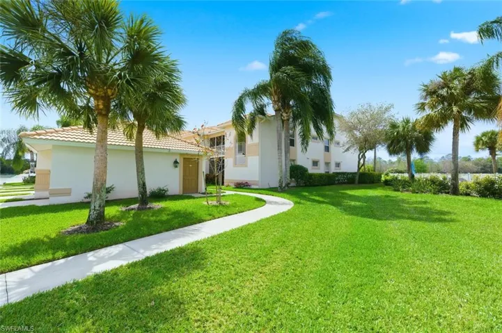 Enjoy spectacular western exposure and sweeping water views from this highly desirable first-floor end-unit Abbey floor plan. With over 1,600 square feet of living space, this residence lives comfortably like a single-family home while offering the ease of condo living. Relax on your private lanai and take in breathtaking sunsets and abundant wildlife overlooking the peaceful water view—perfect for unwinding with a glass of wine at the end of the day. This meticulously maintained condo features updated bathrooms, custom millwork, a stainless steel farmhouse sink, and a beautifully upgraded cove ceiling in the kitchen. Additional improvements include a new A/C system (2025) and an electric storm shutter on the rear lanai for added convenience and peace of mind. Storage is abundant with three large walk-in closets, and the property also includes a one-car garage. Ideally located next to the community pool with additional guest parking nearby, the home also offers two screened lanais to enjoy Florida’s indoor-outdoor lifestyle. Golf membership is included with purchase—no waitlist required. The championship golf course winds through lush preserves and natural landscapes, creating a serene and scenic environment. Residents enjoy a wealth of resort-style amenities, including a beautiful clubhouse, lap and resort-style pool, Hammock Bar, pro shop, bocce courts, tennis, and a full calendar of social activities. The location is exceptional—just 15 minutes to downtown Olde Naples and its white-sand beaches, and about 20 minutes to Marco Island. Beautifully turnkey furnished—just bring your toothbrush and start enjoying the Florida lifestyle.