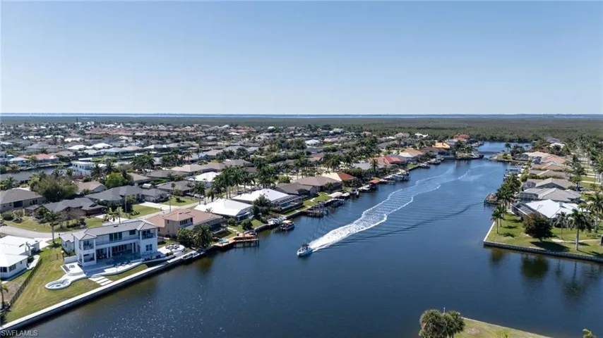 Come see this boaters dream home with insane views. This stunning pool home has a 3 car garage, 4 bedrooms including an upstairs flex room, 4.5 baths, a den, lanai, large stamped concrete deck, 8000# boat lift with wrap around dock, and much, much more.It comes turnkey so bring the whole gang and your toothbrushes and move right in. Situated on a wide water canal this home boasts spectacular intersecting canal views straight from your front door, through the French doors, overlooking the pool, across a 200+ foot wide canal and straight down the intersecting canal. You really have to see this home to truly appreciate all it has to offer. The gorgeous kitchen features wood cabinetry, stainless appliances, granite countertops and backsplash, a center island for extra work space and a large walk-in pantry complete with wine fridge. The oversized kitchen also features a breakfast nook with spectacular water views. The giant lanai is perfect for entertaining poolside with expansive views and plenty of room for entertaining. Don’t miss the pool bath located under the stairwell but accessible from outside for a genius use of space. Back inside the spacious primary suite features tray ceilings and incredible views and the ensuite has dual sinks, an oversized walk in tiled shower and a soaking tub. Head to the other side of the home and one guest room also has it’s own ensuite and the other has lanai views. next, go on upstairs to the large flex room which can be used for media room, a fourth bedroom, a family room, ect., the possibilities are endless. This home is ready to go, move in today and start living your best life immediately!
