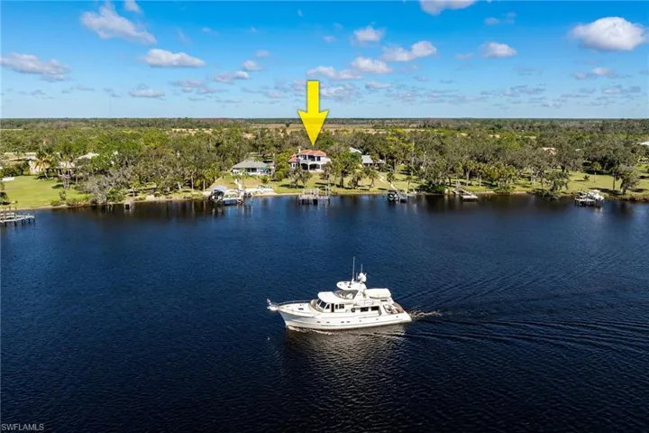 Exclusive Alva waterfront retreat in the sought-after Caloosahatchee River! Nestled behind a majestic oak canopy driveway is a Spanish style estate. Enter through mahogany double doors into a grand foyer adorned with a dazzling chandelier, captivating fireplace & grand spiral staircase. Crown molding graces every corner, leading to a gourmet dining room w/ 10ft glass sliding doors offering dinner guests breathtaking views. Enjoy entertaining w/ an outdoor kitchen by the pool & spa, surrounded by new professional outdoor lighting & lush landscaping. The top floor showcases all-new tile & an exquisite terrace designed for relaxing evenings watching yachts cruise by. Visitors will also feel at home as they cross the courtyard to their guest quarters. The waterfront lifestyle is at your doorstep w/ a 16k ib boat lift & 2 8k jet ski lifts. A 20-min boat ride takes you to waterfront restaurants, while a 10min drive to I-75 & 30 mins to RSW Airport provide seamless travel. Upgrades include 4new A/C units that filters & removes odor, fresh paint throughout, newly sealed travertine tile & new gutters! The property even offers space for those wanting to build a garage! No water intrusion on this home! Call to view today!