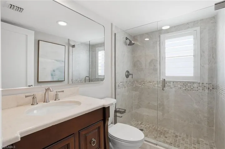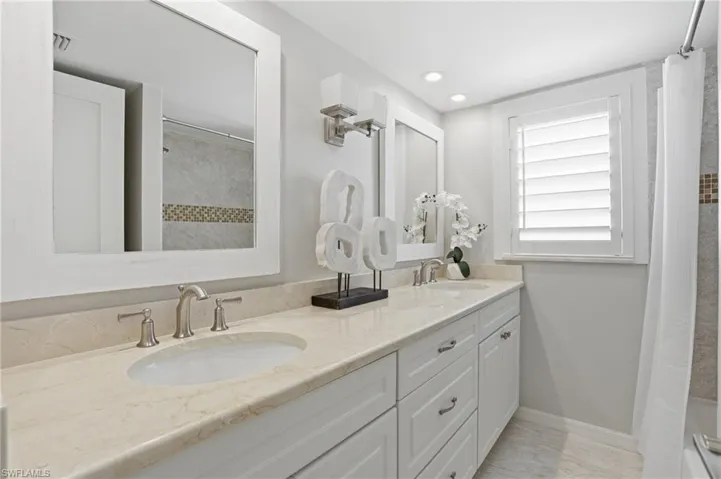 Fully renovated and professionally designed TURNKEY beachfront condo located in the highly desirable Hickory Shores, a boutique 21-residence condominium on Bonita Beach. This 4th-floor 2-bedroom, 2-bath residence offers stunning Gulf views and the soothing sound of waves right from your private balcony. Thoughtfully designed by Janet Graham, the spacious open floor plan features a bright coastal-style kitchen, upgraded lighting and fixtures, and beautifully updated bathrooms, including a walk-in shower with frameless glass enclosure.