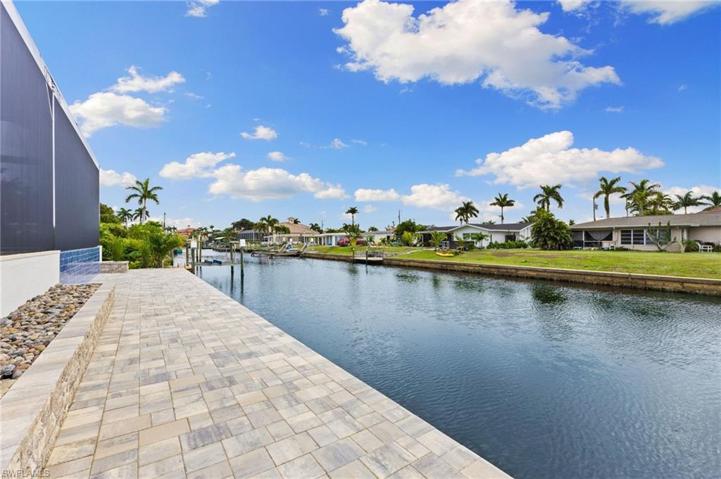 Reduced by a substantial $97,000! Sellers are motivated and ready for their next project, and have priced this home to sell while still recognizing its inherent value. Experience opulence at this Gulf Access residence, a brief 5-min boat ride to the river via a sailboat access canal. Less than .5 mile to the Yacht Club, a new City of Cape Coral redevelopment project that will revitalize the entire neighborhood. This will be the crown jewel of the Southeast Cape. Spanning 2,939 sq ft, this 3-bed, 3-full bath, 2-half bath home features a study and media room. The great room splendor is enriched by a coffered ceiling with wood beams, custom lighting, a media wall embracing a 74″ linear electric fireplace, and expansive 10 ft sliding glass doors. Primary living areas boast white oak wood flooring, while bathrooms showcase complementary tile. The upgraded kitchen, adorned with custom lighting, quartz countertops, and stainless-steel appliances, is a culinary haven. The outdoor oasis features a custom 400+ sq ft pool with sun shelf, LED lights, a spa, electric heater, and automation. The outdoor kitchen includes a built-in grill, under cabinet refrigerator, and a spacious granite island. New seawall with end-to-end pavered captain’s walk. The residence features a durable tile roof, 10 ft iron front door, and hurricane impact windows for peace of mind during inclement weather. A Southwest Florida dream home: refined living meets luxury, embraced by contemporary comfort.