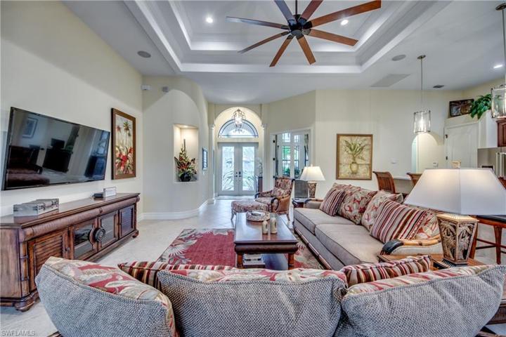 Welcome to your dream home! This stunning 3-bedroom, 3-bathroom residence, complete with a den and an extra large family/flex room/or 4th bedroom that looks out to the pool. It is a perfect blend of modern comfort and luxurious living. Nestled under a brand-new tile roof and adorned with freshly applied exterior paint, this home exudes curb appeal from the moment you arrive. As you step inside, you’ll be greeted by an inviting atmosphere, with new appliances and countertops adorning the kitchen, creating a sleek and stylish space for culinary delights. Professionally decorated with a timeless & comfortable Tommy Bahama flair. One of the highlights of this property is the large pool and deck, an ideal spot for entertaining or simply relaxing under the sun. The built-in grill adds a touch of convenience for outdoor gatherings. Surrounded by majestic palm trees and lush landscaping, the pool area becomes your own private oasis. An updated AC & handler and water heater, all replaced in 2023. It comes fully furnished with carefully selected furniture and art. Don’t miss the opportunity to make this meticulously and thoughtfully upgraded home your own.
