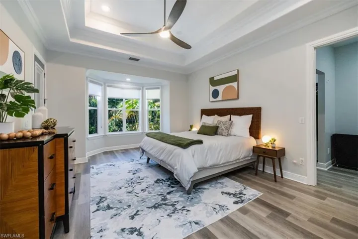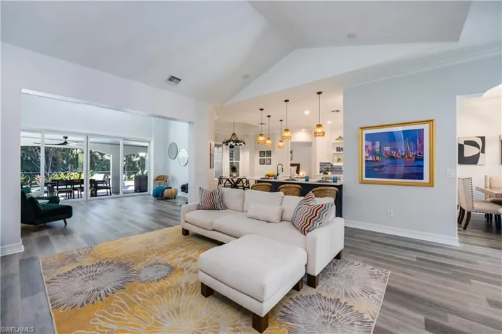This home is a true gem, designed with the luxury home buyer in mind, offering a central location near the area’s most sought-after amenities while maintaining an air of privacy and exclusivity. Discover an exquisite blend of refined luxury, serene privacy, and tropical elegance in this spectacular estate located in the coveted San Carlos Estates of Bonita Springs. Perfectly positioned on a lush 1.25-ACRE LOT, this home provides a tranquil and private escape while being just minutes from Coconut Point and Southwest Florida’s premier dining, shopping, and white sandy beaches. Encompassing 2,702 square feet of meticulously curated living space, the property boasts 3 spacious bedrooms, a versatile den/office, 2 1/2 spa-inspired bathrooms, and a 3-car garage. Graceful archways, custom crown molding, tray ceilings, and luxury vinyl plank flooring throughout elevate the sophisticated aesthetic, making this home a masterpiece of design and comfort.