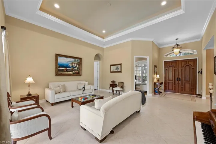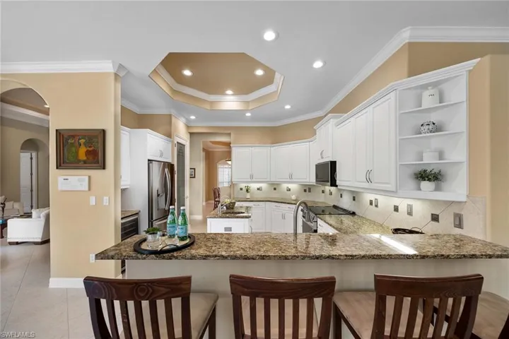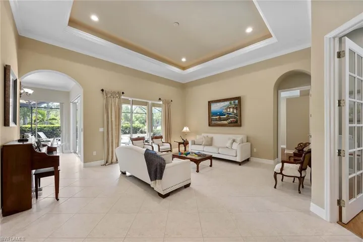 Located in one of Naples’ most sought-after private gated golf and tennis communities, this luxurious 2,948-square-foot home offers great living space, privacy and tranquil outdoor space. The floor plan is designed for entertaining with three bedrooms, three full baths, a den, dining area, dine-in kitchen space, high ceilings, and a split bedroom floor plan. Finishes and appointments include an updated kitchen, granite throughout, crown molding throughout, tankless water heater, central vacuum, and saltwater pool and spa. An oversized three-car garage completes this quality custom home. The Club at Olde Cypress, members enjoy a welcoming atmosphere offering world-class golf, tennis, pickleball, state-of-the-art fitness facilities, an about to be newly renovated clubhouse with no assessment to homeowners, offering casual and fine dining, and an exhilarating social lifestyle. A multi million dollar Clubhouse renovation with No Assessments to members will start April 2025. All schools in this zoning district have an A rating. Just minutes to the beaches, restaurants, and shopping.