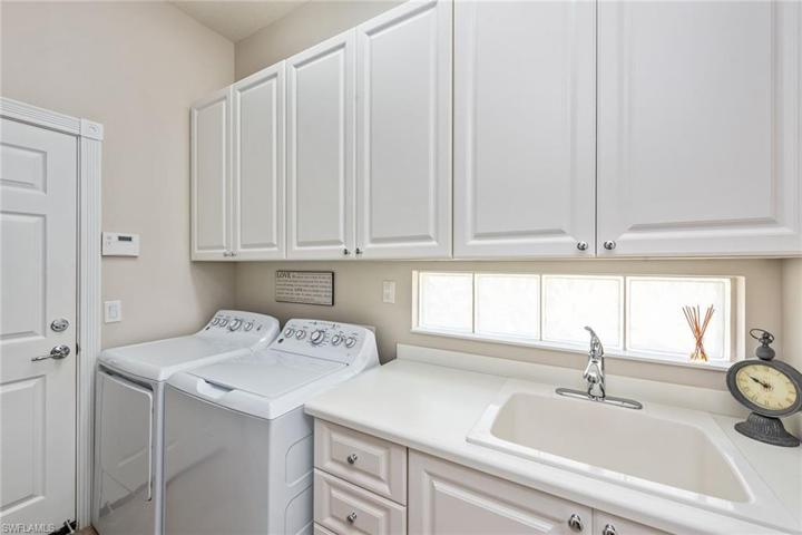 A lakefront residence on a quiet cul-de-sac street in amenity-rich Verona Walk. As you step inside this three-bedroom plus den, 2.5-bath freshly renovated and immaculately maintained home, you’re greeted by 12-foot ceilings, crown molding, updated lighting, Hunter Douglas shades, tile floors and neutral paint. The premium-quality open kitchen boasts soft-close white wood cabinets with underlighting, extended storage, quartzite countertops, and newer stainless appliances with warming drawer and induction cooking. Baths enhanced with new wood cabinets and quartz, and waterfall tile shower. The screened-in lanai with heated pool and spa and electric shutters extends the living space with vistas of the lake. Added perks include newer washer and dryer, new carpet, new exterior paint, new landscaping, central vacuum, poured cement construction and two-car garage with electric car-charging capability. A short distance to the town center offers a restaurant and bar, ice cream, post office, gas station, car wash, salon, resort-style pools, fitness center, tennis, pickleball, basketball, bocce, playground, an extensive activity schedule and gated security. Some furnishings are negotiable.