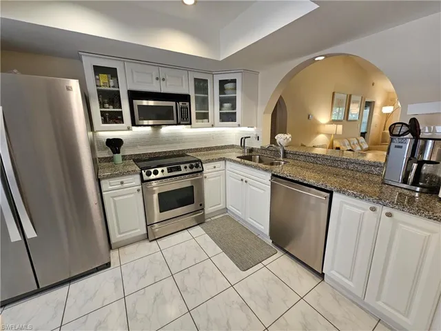 This lovely 2-bedroom 2 bath condo has an open floor plan creating an airy feeling that is calling you home. Enjoy the partial lake view from your lanai having your morning coffee or entertaining guests. Large master bedroom features a walk-in closet, and lanai access. The master bath features a walk-in shower and dual sinks. Spacious eat in kitchen with stainless steel appliances. Unit extremely clean, updated and ready to move in. Conveniently located close to shopping, restaurants, I-75, downtown Naples and its beautiful beaches. Amenities include two swimming pools, and hot tub in addition to the use of the Master Association’s clubhouse, tennis / pickle ball courts and pool. Enjoy the lovely walking paths with mature landscaping. Come see for yourself all that paradise has to offer.