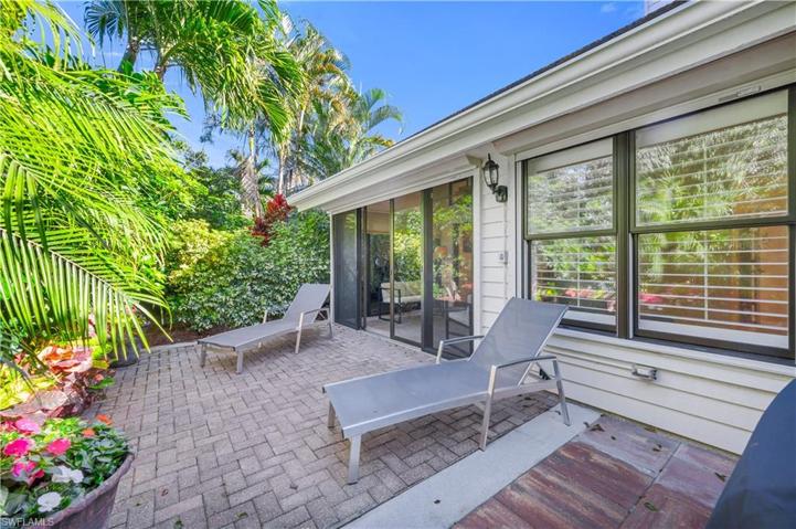 Unique opportunity to own a coveted home in super friendly and popular community, Villas of Pelican Bay. This villa features a large private courtyard with water feature and great location across from pool. Enclosed air conditioned lanai with extended paver rear patio for barbeques and plenty of privacy. Electric shutters throughout. Both bathrooms renovated in 2023. Brand new washer/dryer and hot water heater. All Bosch appliances including induction stove w/convection oven, dishwasher, microwave, Whirlpool fridge. Short walk to tennis and Tram stop for beautiful south beach access. Pelican Bay residents enjoy an abundance of unparalleled amenities including, world class beaches with sailing and kayaking, casual elegant dining, state of the art fitness, tennis & miles of protected nature trails. $6m renovation to PB Community Park approved with 10 pickle ball courts reserved for PB. Just minutes to top notch entertainment options such as Artis Naples, shopping/dining Mercato & Waterside Shops, The Ritz Carlton & Naples Grande Resort. First class pet-friendly community with regular activities & monthly social gatherings.
