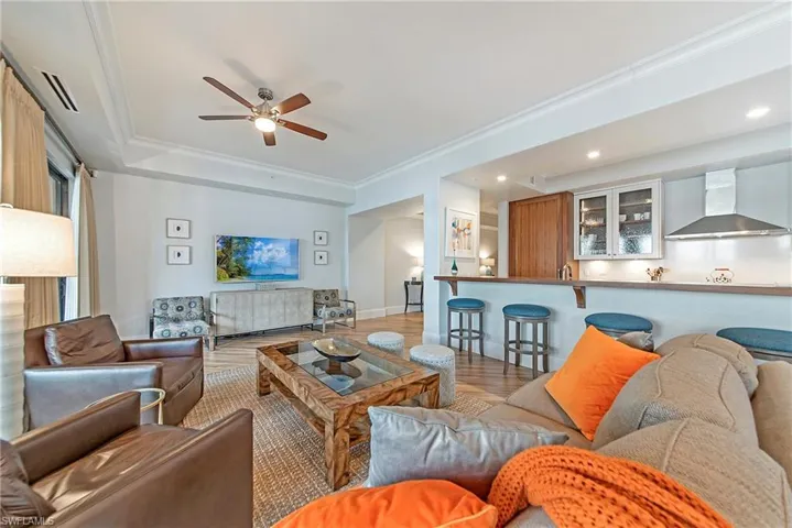 Experience unparalleled luxury in this exquisite 3-bedroom, 3.5-bathroom beachfront condominium situated within the esteemed gated community of Miromar Lakes Beach and Golf Club. Custom inlaid flooring graces the living areas and master bath, while the kitchen boasts custom cabinets and countertops, creating an ambiance of timeless elegance. Thoughtfully furnished with an abundance of natural light streaming through, this residence offers a sanctuary of comfort and sophistication.