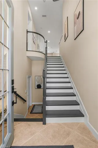 Most sought after condo in Shadow Wood! Upstairs and Updated Indigo Isle lives like a single family without the maintenance! South facing with views over multiple lakes and fairways in a low density community of only 36 units. New roofs, new painting, new pool resurface and exercise equipment. Updates include all new black matte hardware, wood steps and railing refinished to iron ore and white, new modern a/c vent covers with linear air diffusors along with adding extra vents and returns, New LED lighting including fixtures throughout, Minka fans in living room and master bedroom, new lanai ceiling fans, new flooring in office/flex room. Walls have been removed between kitchen and living room, dining room and wet bar area creating a large modern living area, new quartz counters and backsplash in the kitchen, new Samsung Bespoke appliances in the kitchen. New quartz counters with waterfall in the wet bar area, newer LG washer/dryer, master bath has recessed panels, framed mirrors, venetian plaster, granite counters and quartz waterfall where shower doors have been removed. Double doors removed in the master bath to create a larger 8 ft. opening, guest baths have granite, new faucets and LED lighting. Fabric hurricane shutters on the lanai, new impact glass windows on all rear facing windows. Electric fireplace in the living room. Stainless steel supply lines for all plumbing. Shadow Wood Country Club offers 54 holes of championship golf, 2 clubhouses, 9 Har Tru tennis courts. $22.5 million dollar Lifestyle center to include Resort style pool, Poolside restaurant and bar, 6 indoor Pickleball courts and a Grab and go cafe currently under construction. The Commons Club has a state of the art Fitness center, Rosie Spoonbills restaurant and access to private beach club.