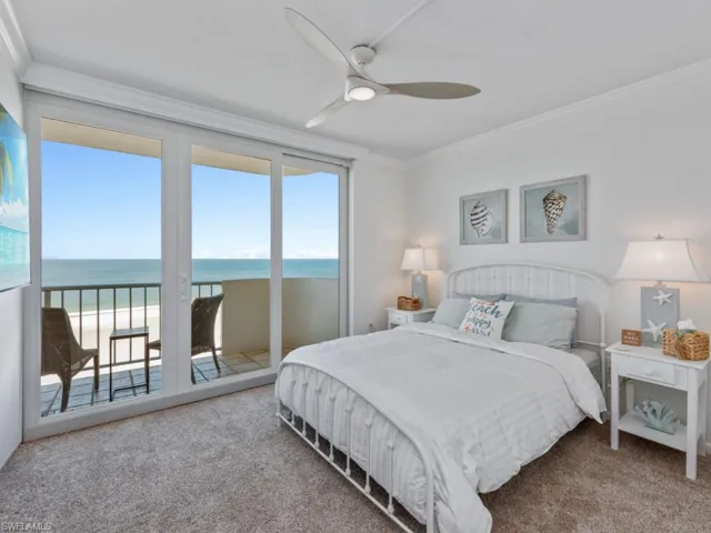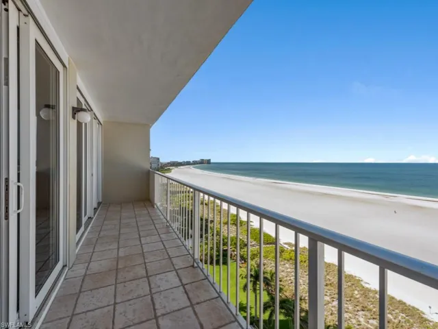 Stunning 17th-floor beachfront residence boasts sweeping views of Marco Island’s crescent shaped beach and the sparkling waters of the Gulf. This 2 bedroom, 2 bath residence features an open floor plan, remote controlled window shades, and thoughtful details throughout. The beautiful, coastal interior opens to the large beachfront balcony. This is the perfect place to watch spectacular sunsets and enjoy the gentle island breeze and fresh salt air, all from the comfort of your own home. The updated kitchen boasts granite counters, white cabinetry, GE stainless steel appliances, and a contemporary backsplash. The master suite offers access to the balcony and spa-like ensuite bath with walk-in shower, floor-to-ceiling tile, and modern lighting. The additional guest bedroom also offers access to the balcony. Enjoy the convenience of a dedicated, covered parking space with extra storage. Impact windows and sliders provide extra peace of mind. Admiralty House has many fine amenities including a beachfront pool, beach access, chickee tennis courts, BBQ area, chickee huts, onsite management, social room, and more.