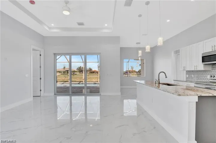 JUST REDUCED! Resort-Style Living in NW Cape Coral’s Hottest Growth Corridor ! Step into paradise with this beautifully crafted Lago Model pool home, nestled in the highly desirable Northwest Cape Coral—where breathtaking sunsets paint the sky and future development like the 7 Islands Project and Crystal Lake promise even more lifestyle perks. This move-in ready gem boasts quality construction and upscale finishes throughout, including soaring ceilings, elegant 8-foot doors, 6-inch baseboards, and PGT impact-rated windows and doors for peace of mind. The open-concept layout flows effortlessly across textured walls and tile flooring, anchored by a chef’s kitchen with granite countertops, wood cabinetry, and stainless steel appliances. The spacious primary suite offers dual walk-in closets, double vanities, and a spa-like shower—your personal retreat after a day on the water. Outside, unwind in your screened saltwater pool oasis, surrounded by lush landscaping and a full irrigation system. Whether you’re hosting friends or enjoying a quiet sunset swim, this home delivers the resort lifestyle you’ve been dreaming of. Additional highlights include: Epoxied garage floor & generator plug ready, Washer & dryer included, 2-car garage, and Impact windows & doors. Cape Coral is one of Florida’s fastest-growing cities, known as the City of Canals—with endless boating, fishing, and beach-hopping adventures just minutes away. Fall in love. Make this house your home. Schedule your private showing today and experience the tropical lifestyle that only Southwest Florida can offer. Seller has incentives at 4.85% interest for buyers with local lender!