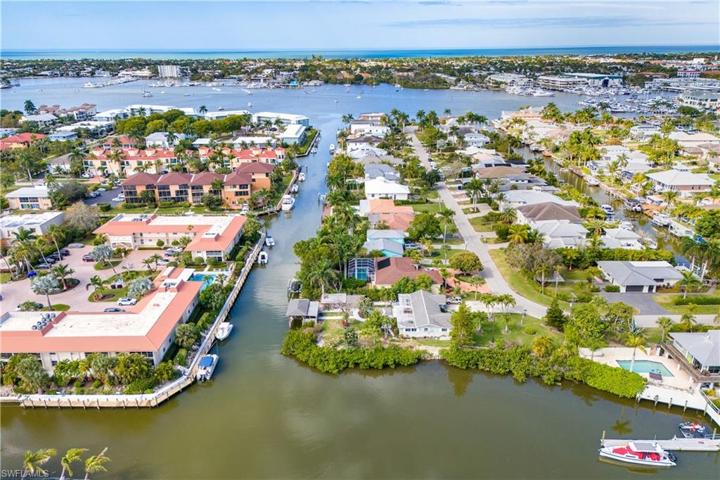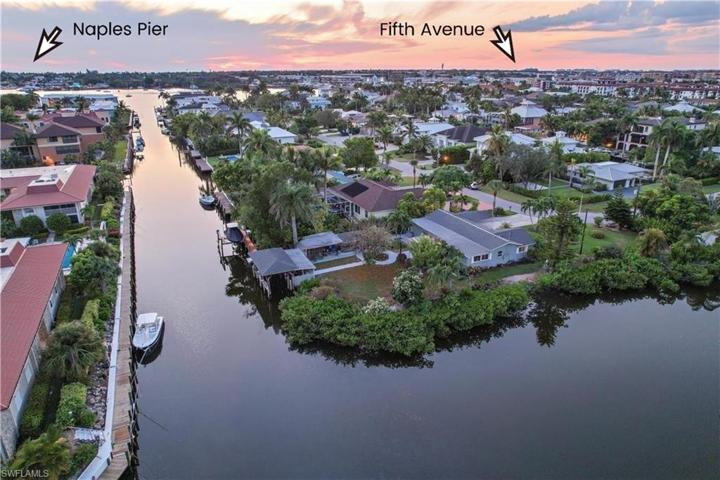 ABoasting nearly 300 feet of water frontage, this exceptionally rare corner lot promises swift, bridge-free direct boat Gulf access to Naples Bay, situated in the highly coveted boating community of Royal Harbor. Its proximity to downtown Olde Naples and Gulf beaches makes it a coveted location. What sets this property apart is the “grandfathered-in” covered private boat dock—one of the few that can accommodate a 60+ foot vessel! This presents a prime opportunity to construct the home of your dreams on a distinctive lot while still being within walking distance to Tin City and downtown 5th Avenue. Whether you’re an avid fisherman or love cruising the Gulf waters, this property offers unparalleled waters for your boating pleasure. With a limited supply remaining of these unique waterfront opportunities, time is of the essence, so take action now! Royal Harbor also enjoys the benefit of no HOA fees, and with this property sold at lot value, there’s no better time to invest in your dream waterfront lifestyle.