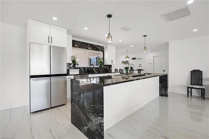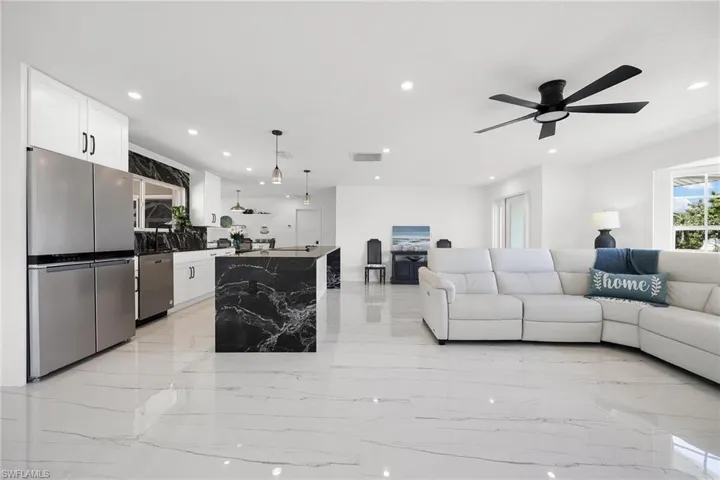 Your dream home awaits with endless possibilities. Live in the beautifully updated home while you design your future new construction on this exceptional homesite, use it as a high-performing vacation rental, or enjoy it exactly as it is. The property includes an attached 2-car garage plus an oversized 24’ x 35’ garage with a canal-facing office or flex space, offering secure storage and room for up to 6 vehicles, business equipment, boats, or toys. Just 3 homes from the river, the property offers DIRECT SAILBOAT ACCESS with NO BRIDGES TO OPEN WATER and is located in a highly sought-after Cape Coral neighborhood where many older homes are being remodeled or replaced by new luxury construction. This home has already been tastefully updated, offering move-in or rental-ready comfort with future build potential. Features include a new roof (2023), Fabri-Tech pool cage, Rheem tankless water heater, porcelain tile throughout, modern kitchen with waterfall-edge granite island, custom closets, and solid core doors. Composite dock and 10,000 LB boat lift are already in place. The value is in the land, the location, and the versatility this property offers.