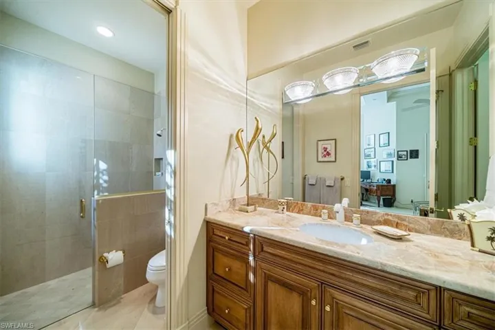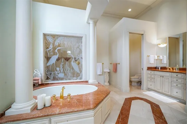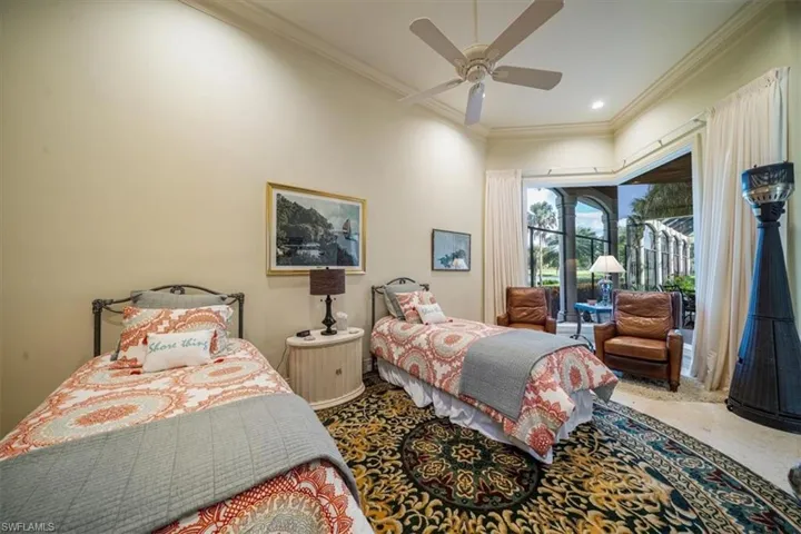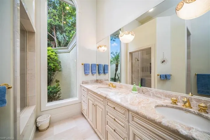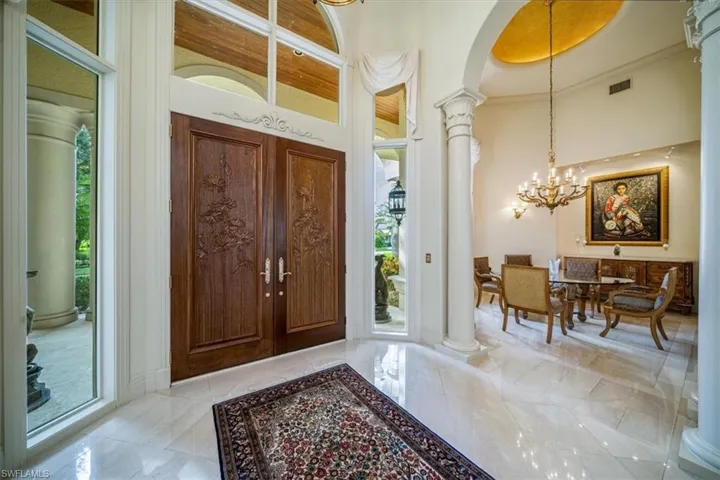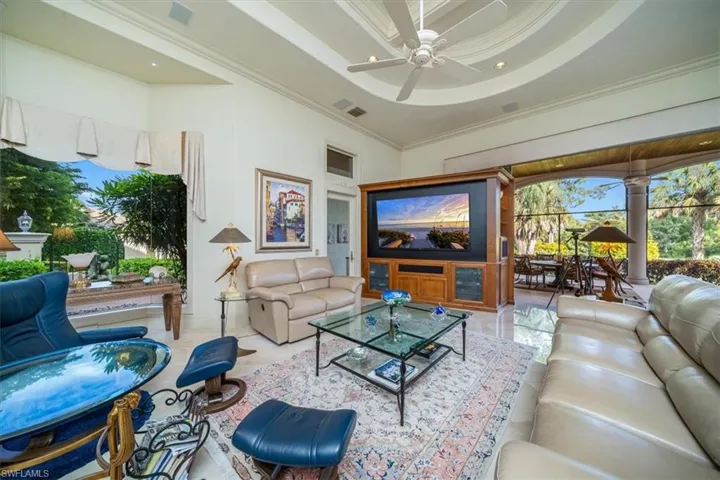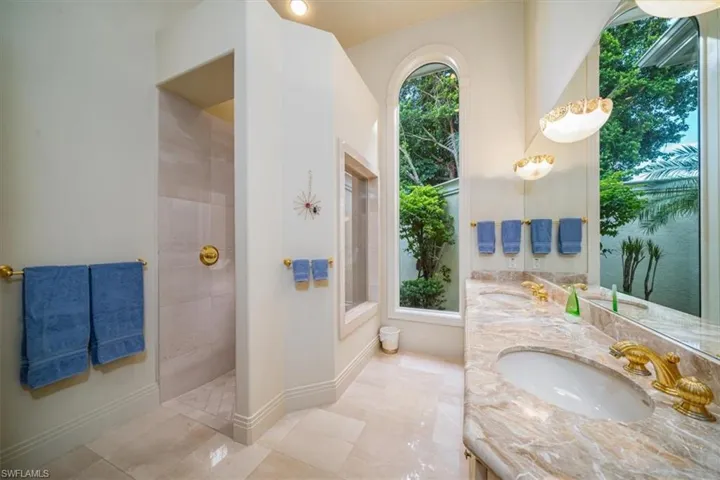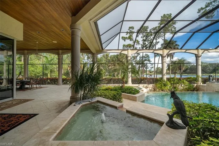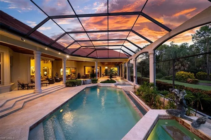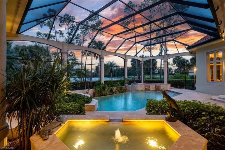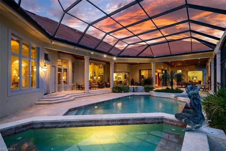 This Quail West estate offers 4 bedrooms, 4 full & 2 half baths, complete with a dedicated study and a private guest casita and is nestled on nearly an acre of prime real estate. The property boasts breathtaking views of the 14th hole of the Preserve Course, with expansive water and golf course vistas. This impeccably maintained home is brimming with high-end upgrades and recent updates, including a new washer, insta-hot water system, and a new roof installed in December 2020. The gourmet kitchen features a new Wolf range, Bosch double oven, Sub-Zero refrigerator, and Moen faucets, catering to the most discerning chef. Additional notables include a powerful 27KW generator, a 3-car air-conditioned garage with approximately 325 square feet of climate-controlled attic storage, a deep well pump and pressure tank installed in 2024, Wi-Fi thermostats, a wine cooler, and elegant marble and wood flooring. The spacious bedrooms are complemented by double doors, a lobby bar, two luxurious owner’s suites, and top-notch security features. The home also offers a central vacuum system, sculptured and recessed ceilings, boosted Wi-Fi, rounded corners, water filtration, indirect lighting, and a cherry-stained hardwood library. The private casita, with its own entrance and kitchenette, provides the perfect retreat for guests. The lanai offers a screened living area and is nothing short of spectacular, featuring a heated pool and spa, reflection ponds, fountains, and a lanai bar with an electric grill. This serene oasis offers unparalleled privacy and stunning views, making it the ideal setting for both relaxation and entertainment. Discover the pinnacle of luxury living with a Class “A” golf membership at one of the nation’s premier country clubs!
