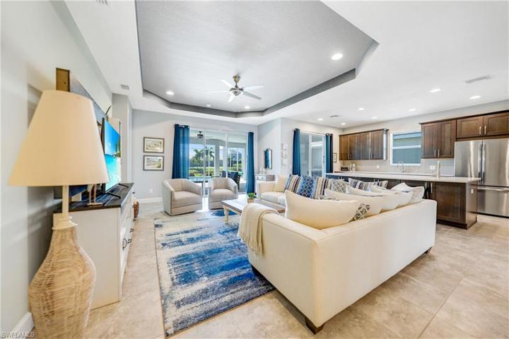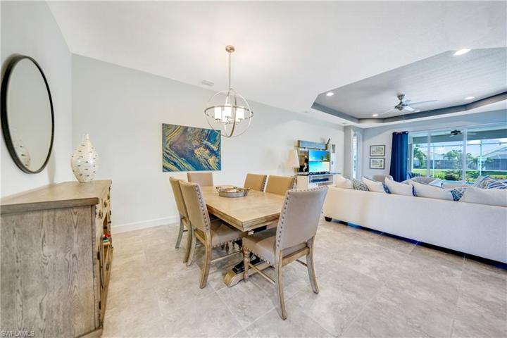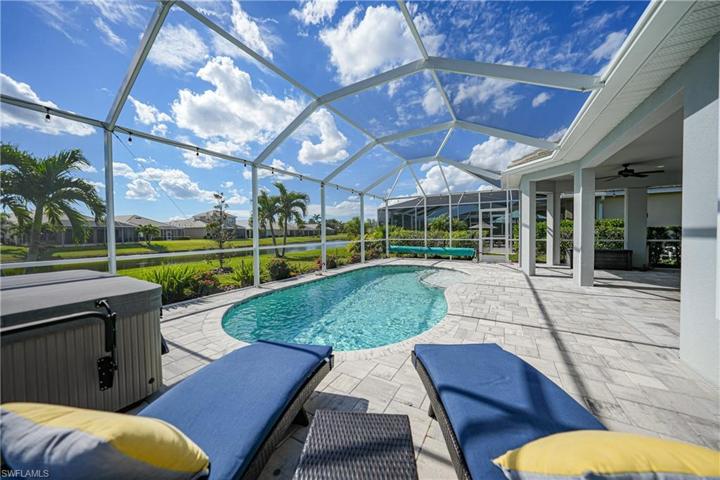 Indulge in the epitome of luxury living with this exquisite LAKEFRONT 3-bedroom plus den, 3-bathroom POOL home. From the moment you step through the grand entrance, you’ll be captivated by the thoughtful design and high-end finishes that define this home. The heart of the home is the kitchen, where custom cabinets and stainless steel appliances come together to create a chef’s dream. The breakfast bar adds a casual elegance and serves as a perfect spot for morning coffee. The open concept design allows for great entertaining and everyday living. Tray ceilings adorn the living spaces, adding a touch of sophistication and architectural interest. The owner’s suite is a haven of tranquility, featuring a huge walk-in closet, dual sinks, and a luxurious walk-in shower. Storm ready with roll down shutters in lanai, kevlar and accordion shutters on windows. The pool, complete with a sunning ledge, invites you to unwind and bask in the Florida sunshine. The waterfront setting creates a serene backdrop, enhanced by tropical landscaping that adds to the overall feeling of a secluded oasis. Already plumbed for your outdoor kitchen as well. Enjoy the Florida lifestyle at one of Cape’s most desired GATED communities.