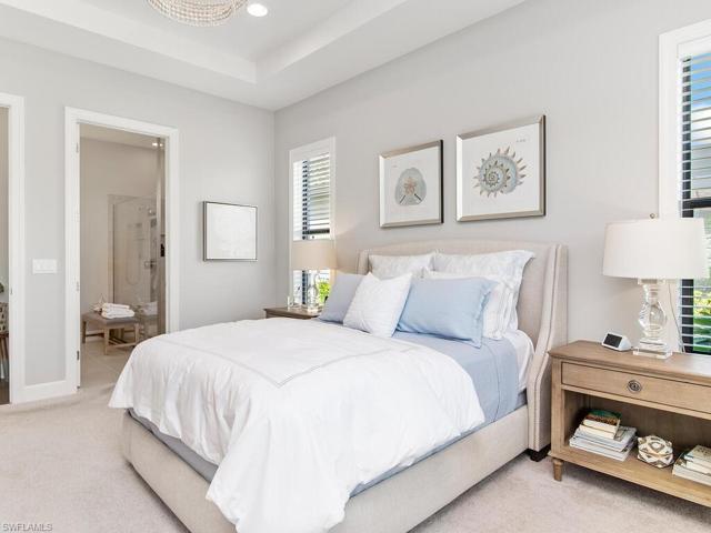 SEE ON TV 10/29 FOX 4 10am and Fall in love at first sight!… from the moment you set eyes on the majestic gardens leading into this stunning Coastal Chic decor home, to the moment you step out to the breathtaking Lanai with tropical plants & beautiful lake water views. This 3 BR + Den, 3 full bath gem is nestled in the popular gated Esplanade at Hacienda Lakes ~a natural gas community. Offering 10′ tray ceilings, engineered hard wood flooring, it boasts an open concept with seamless flow between living, kitchen & dining areas. A split bedroom floorplan offers total privacy for guests. The gourmet kitchen features upgraded GE Cafe appliances, 10′ Quartz island & micro /convection oven. Enjoy grilling in the outside custom kitchen w/ granite waterfall counter. Cool off in the saltwater pool w/sun shelf and tiled waterfall wall & panoramic window super screen enclosure. Boaters will love the 2 car tandem garage that was home to a Boston Whaler! A true resort~lifestyle awaits you in this 6,500 sq ft Clubhouse w/full fitness gym, resistance and lap pools, full recreational facilities & Dog Park. Only minutes to beaches, Marco Island & famous Naples 5th Ave NO FLOOD INSURANCE needed