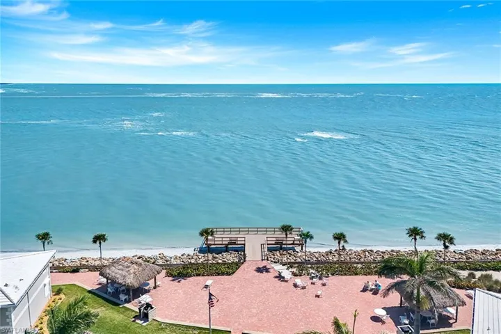 Experience coastal elegance in this beautifully renovated South End condominium, offering serene garden and Caxambas Pass views. The main living area features stunning Pacific Walnut Fiji hardwood flooring with a Pro-Flex 90 sound barrier, complemented by tile in the baths. Completely remodeled, this exceptional unit showcases a raised ceiling (now 8-foot-6-inches) with crown molding, customed closets, upgraded PEX plumbing, impact-resistant windows and sliders, new roof and newer air conditioner for peace of mind. The open-concept kitchen is a showstopper, with stone countertops, bar seating by the window, a stylish subway tile backsplash and crisp white shaker cabinetry. The primary bedroom offers a stunning custom closet. Both baths echo this sophisticated look with matching white shaker vanities, quartz counters, frameless glass shower enclosures, elegant white-and-gray tilework and lighted mirrors. Offered partially furnished in a calming coastal palette of soft neutrals and blues. Enjoy alfresco dining or simply unwind on the spacious screened lanai with southern exposure. This property has exterior elevator to access the second level on each end of the building.