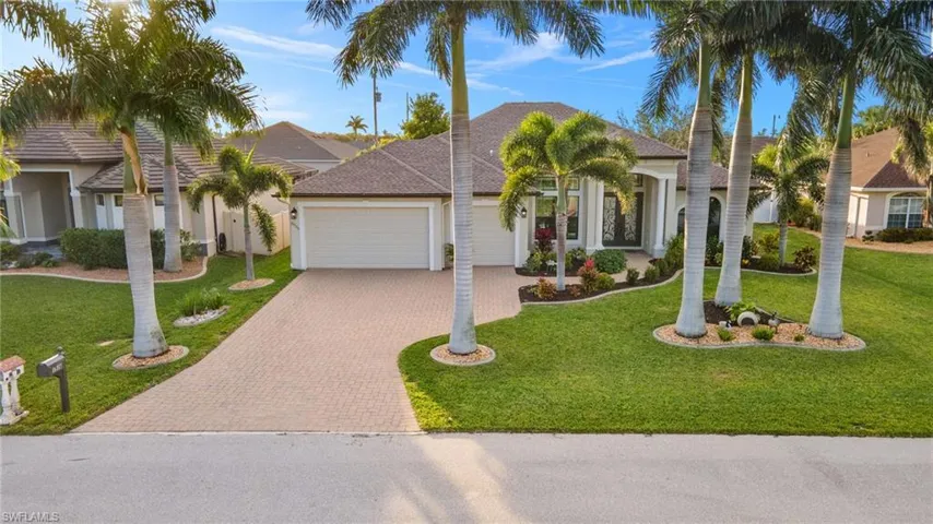 This stunning SW Cape pool home has everything you’ve been looking for in your next home! It’s in one of the most desirable neighborhoods in SW Cape Coral, across from waterfront homes. Gorgeous curb appeal and landscaping. When you walk in the double-doors you immediately see straight through the great room out to the lanai and saltwater pool through 4-panel pocket sliders. The home has 3 bedrooms plus a separate den/office. Great room with soaring 12 ft coffered ceiling and light and bright gourmet kitchen with upgraded granite counters, over/under cabinet lighting, induction cooktop, island with breakfast bar. There is also a separate dining room. The main suite is large with 2 walk-in closets, soaker tub, double sink and oversized shower. New roof in 2023 and new heavy-duty pool cage with picture-window screens. So many upgraded features including whole house water filtration system, generator hookup that can operate the whole house – and the generator is available also. All impact windows and doors, extra deep 3-car garage, heated saltwater pool, fenced, with beautiful landscape lighting. Homes like this don’t come on the market often, so set up your private showing today!