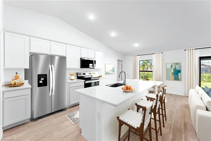 NEW CONSTRUCTION WITH WARRANTY! *Estimated delivery July 2026.* The Cayo Costa combines open-concept living with a smart split-bedroom layout, offering three bedrooms plus a den and two bathrooms. Perfectly designed for entertaining, the main living area showcases a soaring vaulted ceiling that seamlessly connects the kitchen, dining area, and expansive Great Room. A large freestanding island provides the ideal centerpiece for both casual meals and social gatherings, while sliding glass doors extend the living space to a covered lanai for effortless indoor-outdoor living. The private Primary Suite is a true retreat, featuring two spacious walk-in closets and a well-appointed en-suite bathroom. On the opposite side of the home, two comfortable guest bedrooms share a full bath, ensuring both privacy and convenience. A versatile den with French doors offers the perfect space for a home office, study, or creative flex room. Highlights of the Cayo Costa include: Quartz countertops in kitchen and baths, designer cabinetry with soft-close doors, stainless steel kitchen appliance package, upgraded plank tile flooring in main living areas, hurricane-impact windows and doors, attached 2-car garage with direct laundry access, and more! Pictures, renderings, & virtual tour are of similar home & are used for display purposes only.