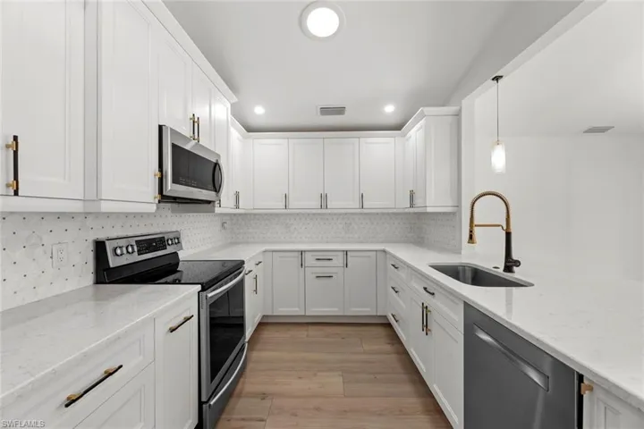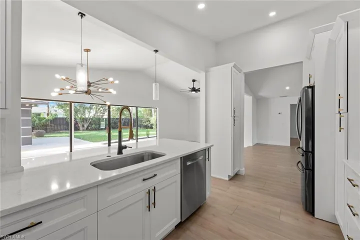 **SELLER FINANCING AVAILABLE** 5.99% interest rate with 20% down. Ask your agent to reach out or check confidential remarks for more information!! Explore this meticulously updated home in Willoughby Acres, nestled on a spacious quarter acre with a desirable Southern exposure. Designed for modern living and effortless entertaining, the open layout and versatile spaces are ideal for gatherings. Boasting a split-bedroom configuration, this residence encompasses 3 bedrooms, 2 bathrooms, and 2115 square feet of living space. The master bathroom showcases floor-to-ceiling marble, while the revamped walk-in closet is equipped with custom built-ins for added functionality. Updates are plentiful, including new fixtures, moldings, and quartz countertops, as well as custom cabinetry and porcelain plank tiles throughout. Step outside to discover a newly paved driveway leading to a privately fenced backyard featuring a 320-square-foot casita/cabana and an enhanced open lanai with ample space for a pool. To compliment the amazing indoor renocation, the exterior has been freshly painted as of August ’23. The property is situated in flood zone X, a lender should not require flood insurance, for peace of mind. Just moments from the happening Seed To Table grocery and dining venue, a short 10-minute drive to the white sand and Gulf of Mexico at Vanderbilt Beach or Delnor-Wiggins State Park, and easy access to the delightful boutiques and dining venues of Mercato and downtown Naples or Bonita Springs. Enjoy the convenience of being only 5 minutes from I-75, with no rental restrictions and positioned within one of Naples’s premier school districts.