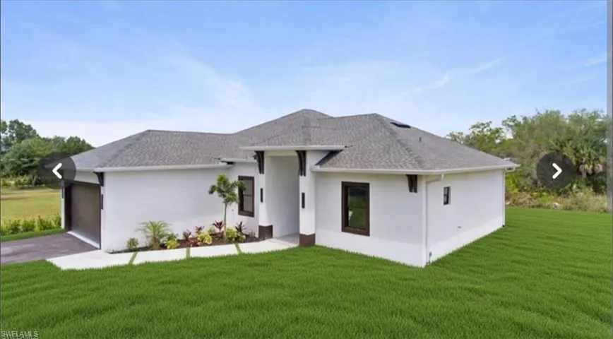 One or more photo(s) has been virtually staged, AI generated or rendered. This brand-new 2026 home showcases a perfect blend of modern luxury and thoughtful design, 3 Beds-2 baths +den, featuring high-end finishes, premium top-of-the-line appliances, impressive 12.4-foot ceilings, and elegant 8-foot interior doors that enhance the sense of space and sophistication. An elegant kitchen with a touch of modern finishes and cabinetry. Situated on a generous 1.17-acre lot with a west-facing front, the property offers beautiful afternoon light and stunning sunset views. Designed for comfort, security, and energy efficiency, the home also includes hurricane-impact windows and doors for added peace of mind. All bedrooms have ceiling fans led color changing lights. The home also features a timed sprinkler system surrounding the property for added convenience and landscape care, as well as an outside kitchen for enjoyment of the outdoor life. Located in the rapidly growing Orange Tree / Oil Well area of Golden Gate Estates, the home is near exciting new retail developments, including a Publix-anchored shopping center, and just minutes from Big Corkscrew Island Regional Park. Great schools in the area, just walking distance to Estates Elementary. Enjoy convenient access to Naples beaches, downtown, and nearby destinations such as Ave Maria, Fort Lauderdale, and Miami.