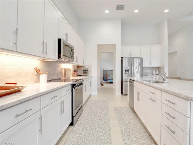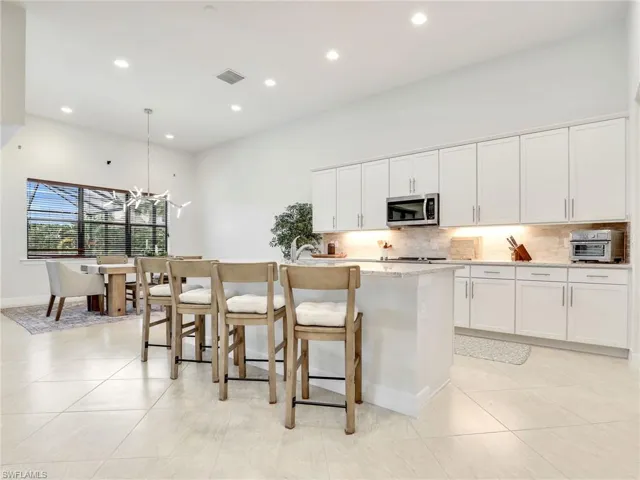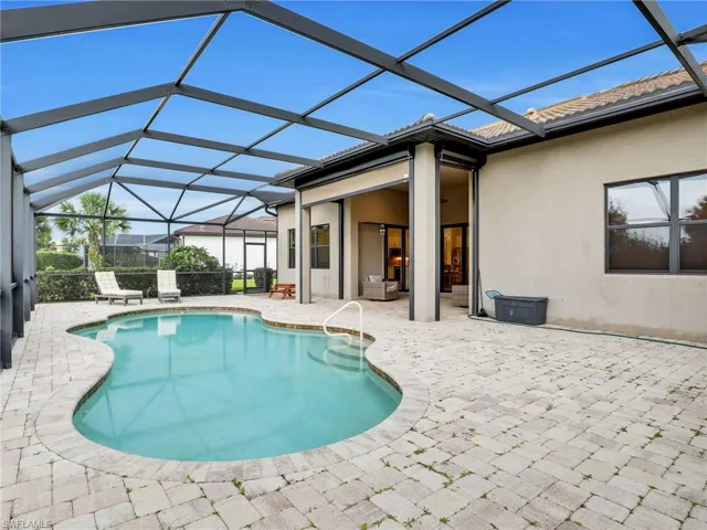 MUST SEE!! One of a kind AMAZING HOME! 3 bedrooms potentially 4 plus a den, office, Butler’s Pantry with a wet bar, bar fridge and Large walk-in Pantry, large laundry room with sink, cabinets, and countertop space. Dining room that could easily be converted to another office or bedroom. Flexible open floor plan, 3.5 baths including a separate pool bath/changing area no tracking water through this amazing house. Zero edge patio doors that totally open to combine indoor and outdoor space. Salt water heated pool. New pool heater installed 2024. Gourmet kitchen with quartz countertops 42′ white cabinetry, pull out drawers, tile backsplash, with huge island, SS appliances. 12-foot ceiling throughout the house with high hats. Designer dining lighting with 8-foot doors to complete the well-designed look. Nice sized closets plenty of storage. Exterior just painted 2024. REMOTE HURRICANE ROLL DOWN SCREEN COVERS installed in 2021. 3 car garage with epoxy floors. Easy to show. short notice ok! Low Hoa fees, included quality lawn care. Fences permitted. PREMIUM OVERSIZED LOT!!! Aver Maria water park 3 blocks away, basketball courts great playgrounds. Move in Ready!