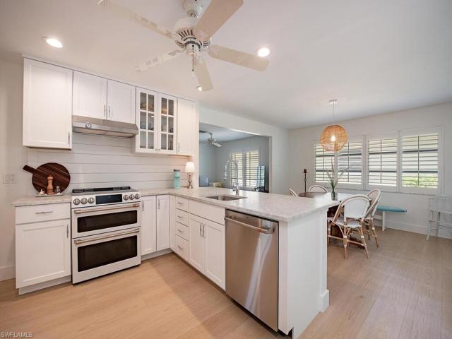 Completely renovated detached Villa, just minutes to 5th Avenue! Elite Construction completely remediated the unit after Hurricane Ian flooding. All improvements have been fully permitted and villa is like new! Beautiful Carrera marble countertops, stainless steel appliances, modern doors, plantation shutters, new hot water heater, and new HVAC are just a few of the highlights of this gorgeous home. Villa is ideally located next to a lot that cannot be built on providing extra privacy and beautiful landscaped views. Relax on the peaceful screened lanai or ride your bike to the beach. This ideal location is just minutes from downtown 5th Avenue South’s, and 3rd Street South’s, fine dining, world-class, shopping, entertainment, and Naples’ white-sand beaches.