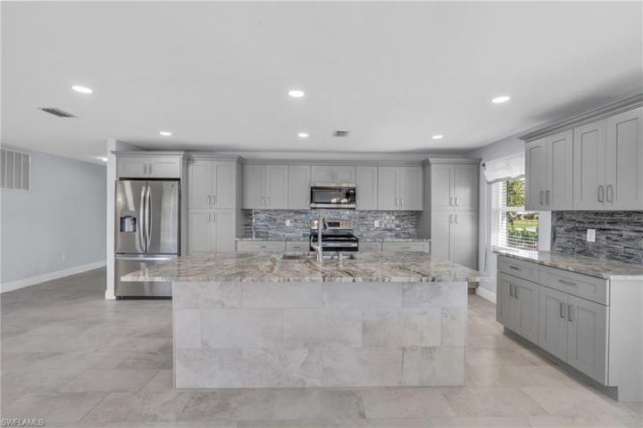 Fall in love with this beautiful setting on a large lot with the lake view and Western Exposure, and the endless upgrades this home offers, including the new roof (2019). Step into a realm of refined living with recently installed tile floors (2021) and recessed lighting throughout, accentuating the seamless open-concept layout. The kitchen boasts new 42″ soft-close cabinets, stainless steel appliances, granite countertops, and an extended island (all 2021), while the bathrooms have been tastefully updated (2021) to enhance comfort and style, with updated vanities and tile showers. Exterior charm is renewed with a fresh coat of paint in 2019, complemented by new gutters. The home features roll down hurricane shutters to give peace of mind with full storm protection. New pool cage screens were added in 2018. Enjoy the outside in the shade of the ample covered space, or sunbathe year round by your heated, saltwater pool and spa. Conveniently located just 3.5 miles from the vibrant 5th Avenue, this location offers seamless access to Naples’ bustling downtown and pristine beaches. Embrace the opportunity to make this charming home your own slice of paradise.