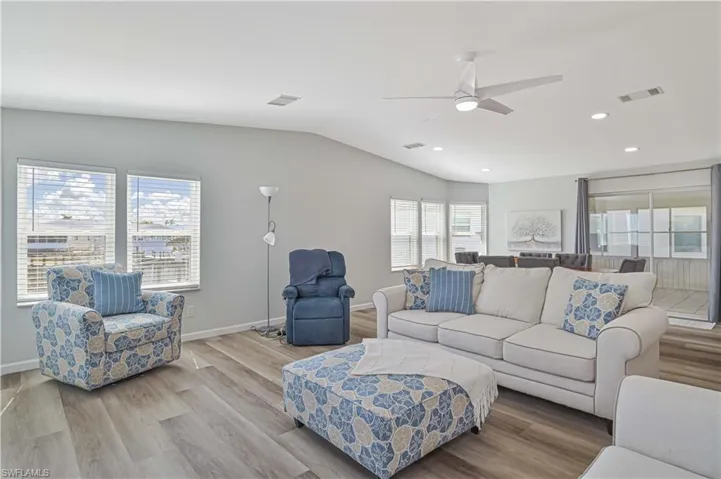 Bayside Estates is a vibrant and active 55+ waterfront community located just minutes from Fort Myers Beach. Residents enjoy resort-style amenities including pickleball, bocce, shuffleboard, a community pool, boating opportunities, and a dynamic social calendar filled with events and activities. Whether you are searching for a seasonal retreat or a full-time coastal home, this property offers the perfect opportunity to live the Florida boating lifestyle. No flooding during Helene or Milton.