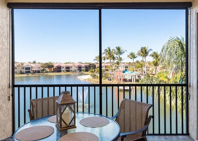 Experience breathtaking sunset views from this THIRD-FLOOR PENTHOUSE terrace condo, overlooking the lake and the lakeside beach at the Club at Rapallo. Relax on your screened lanai and take in the serene water views from this well-maintained condo featuring 10-foot ceilings and abundant natural light.