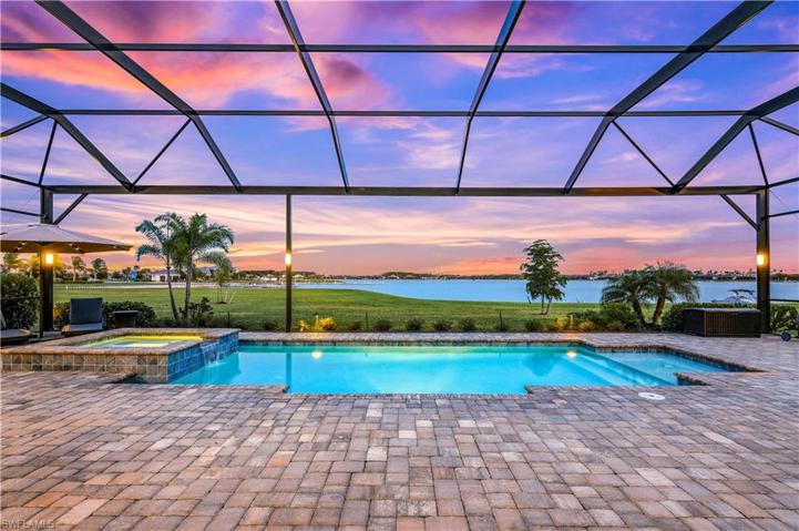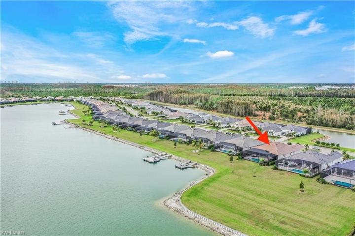 This resplendent gem of a home, located within the WildBlue lakefront gated community provides quick access to Naples, RSW airport, dining, shopping, or a quick skip over to sugar sand beaches. This is one of the only lakes in SWFL that allows boats, jet skis, water sports from your own backyard with magnificent expansive lake views. This spacious Iris model boasts a single-level home with a modern open-concept plan among the bright great room with a built-in entertainment system with coffered ceiling & trim detail throughout, dining room and gourmet kitchen that opens to the lanai for seamless indoor-outdoor living. The owner’s suite enjoys one side of the home, while three secondary bedrooms are found on the other side. The many upgrades include an infrared steam, sauna & salt feature, Standby whole home generator, upgraded appliances, water filtration system, home theater with sound system, Home automation, air-conditioned garage with built in gun safe and extra wall oven and floor to ceiling cabinets, two de-humidifiers added to the AC units with duct air purification in the home, kevlar rolldown shutters on lanai, Outdoor misting system so you can truly enjoy SWFL lake living!