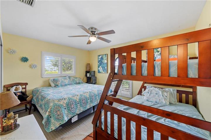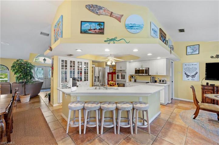 A must-see Cape Coral home! This beautiful three bedroom, two bath pool home is centrally located in a beautiful and quiet neighborhood with many waterfront homes. Enjoy the amazing Southwest Florida weather with plenty of outdoor space. The home sits on three lots and boasts a screened in saltwater pool and spa with pool bath access, a covered lanai, a large open brick patio, and great mature landscaping. Inside, the home offers an amazing split bedroom floor plan with a fully equipped modern kitchen with double convection ovens, breakfast bar, and beautiful built-in cabinets. This home is perfect for entertaining guests or just enjoying some peace and quiet in a beautiful environment. All assessments for city water and sewer have been paid and the roof was replaced in November 2022.