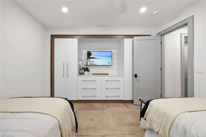 Step inside and immerse yourself in the tranquility of this meticulously upgraded space. The master bedroom features a sumptuous king-size bed and a lavish ensuite bathroom boasting dual sinks and a spacious shower, providing a serene retreat after a day at the beach.