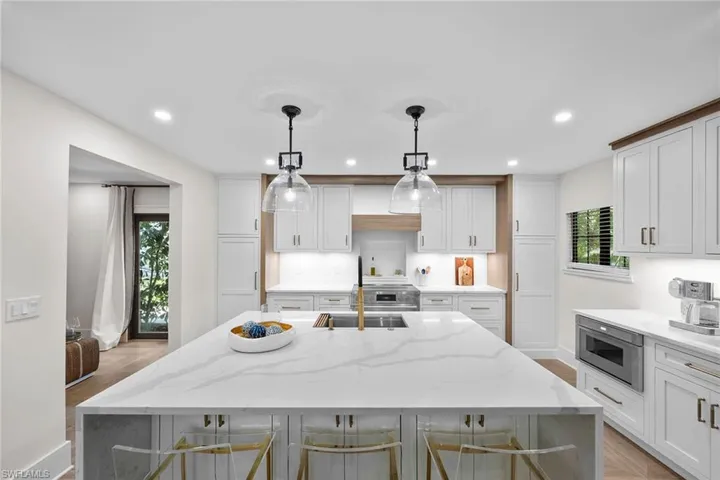 Throughout the home, elegant wood tile 36 x 36 designer tiles create a seamless flow, enhancing the coastal ambiance. The gourmet kitchen is a chef’s